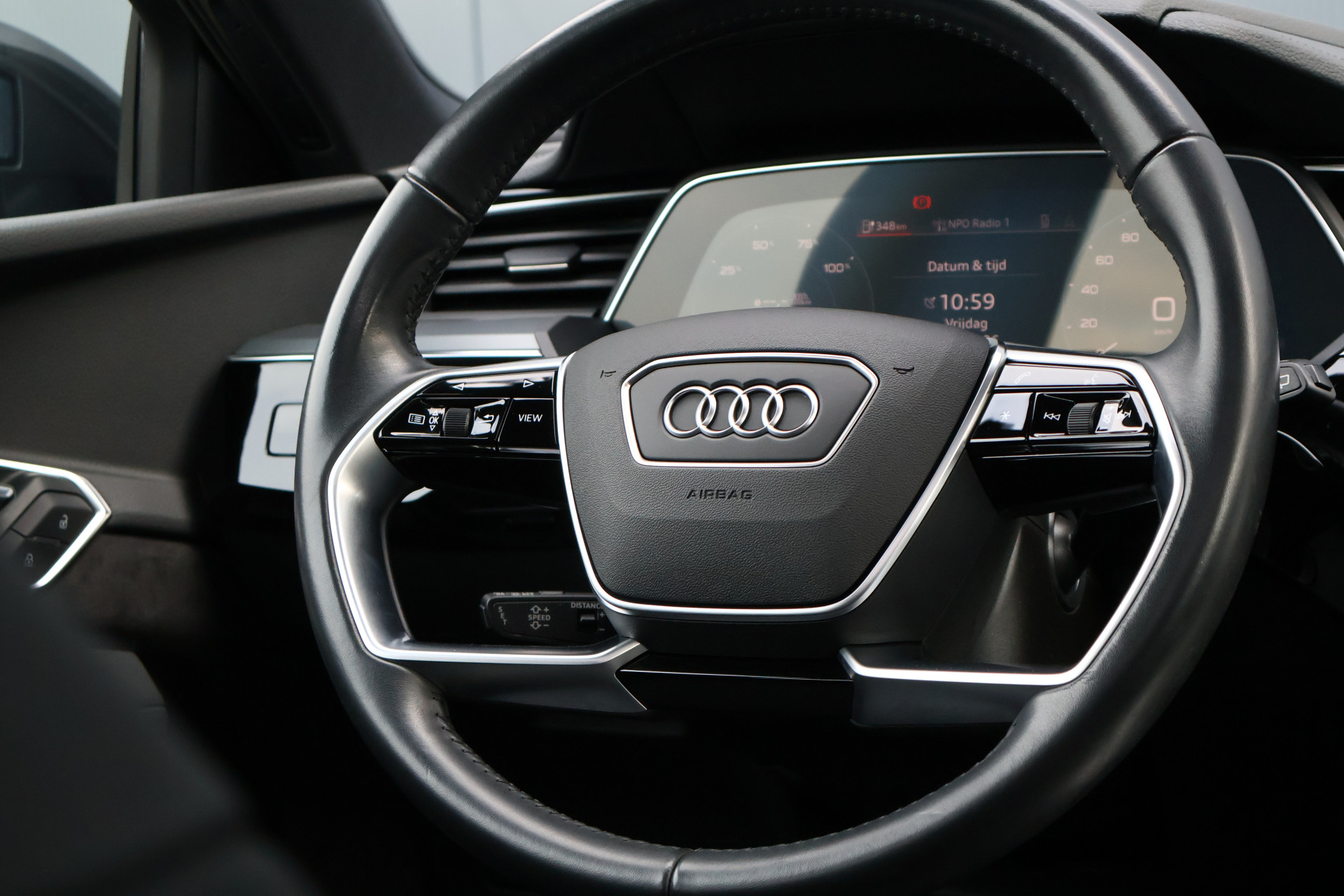 Wat een prachtige en bomvolle e-Tron staat hier! Het gaat hier om een origineel Nederlandse en van de 1e eigenaar afkomstige Audi e-Tron Business Edition Plus met het grote 95KWh accupakket! Hij is voorzien van een zeer rijke optielijst met onder andere een top-view rondomzichtcamera, elektrisch verstel- & verwarmbare lederen zetels met geheugenfunctie, panoramadak, keyless entry, Matrix LED koplampen, adaptieve cruise control én luchtvering!