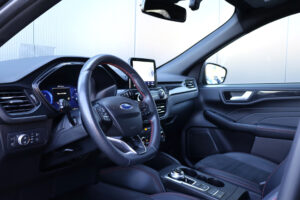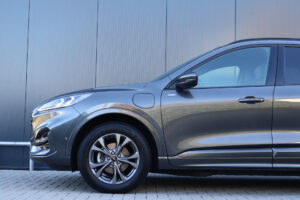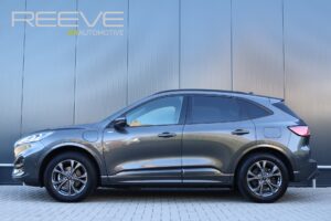 Op zoek naar een ruime, sportieve en rijk uitgeruste SUV met plug-in hybride aandrijving? Dit is hem! Hier staat een origineel Nederlandse en in zeer nette staat verkerende Ford Kuga 2.5 PHEV in sportieve ST-Line X uitvoering! ST-Line staat voor sportieve looks en de X staat voor de meest complete standaard uitrusting. Hierdoor is hij voorzien van onder andere half lederen / alcantara sportstoelen, adaptieve cruise control, stoelverwarming, stuurverwarming, voorruitverwarming, achteruitrijcamera, head-up display, Bang & Olufsen soundsystem, elektrisch bedienbare achterklep én een elektrisch wegklapbare trekhaak!